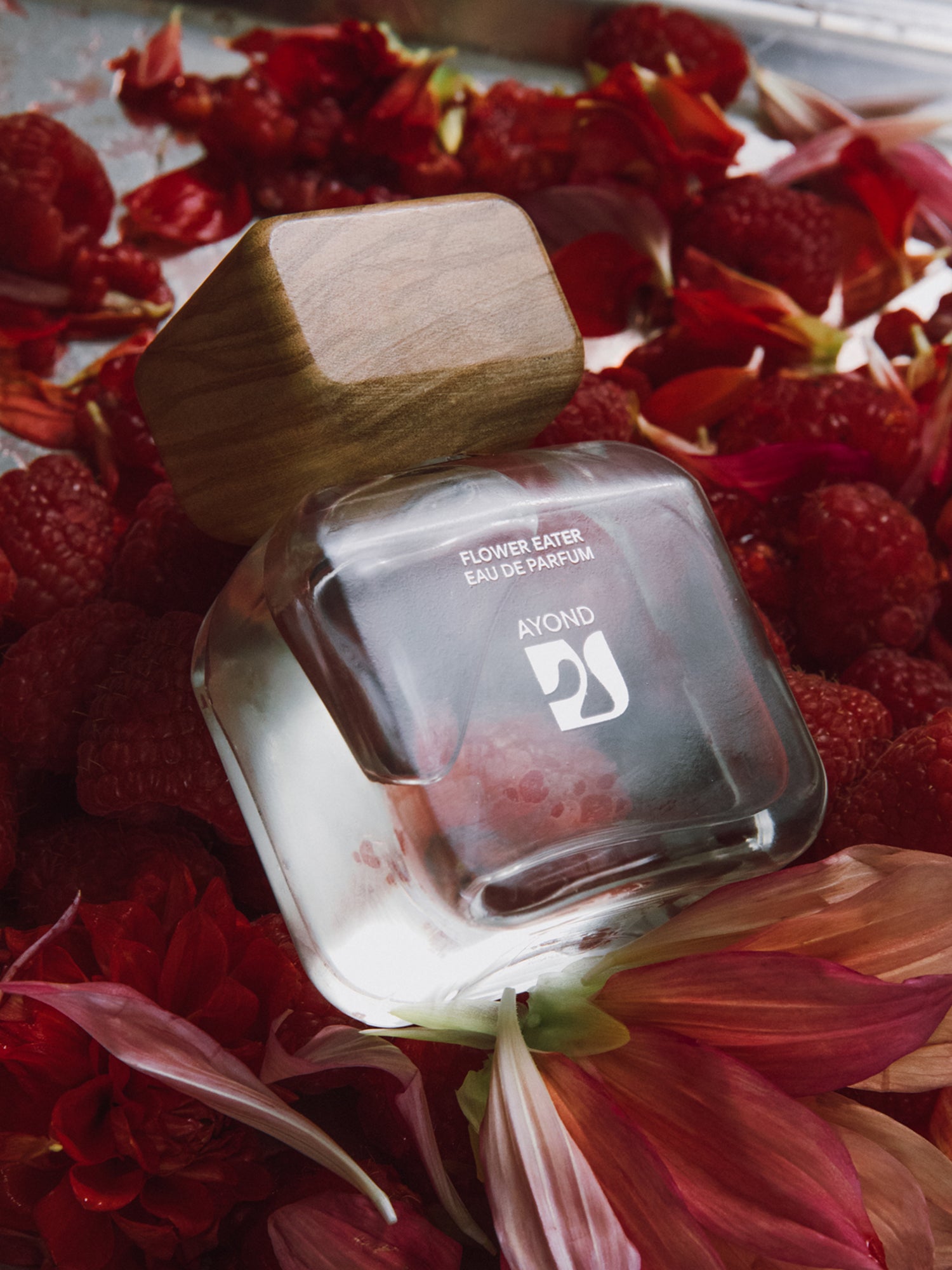 In a garden oasis flowers are more than ornament, they are remedy, ritual, and indulgence. Petals soothe the body. Nectar-saturated stamens awaken the appetite. And a kaleidoscope of color satiates the senses. The ritual begins with a burst of ruby-ripe raspberry and crisp rhubarb. Freesia nectar and fresh rose petals tease the skin in a veil of lush florals. This charged space between desire and sustenance is a form of healing and a taste of something sacred. Flower Eater is a tribute to nature's most intimate offering where beauty is not only beheld but consumed.